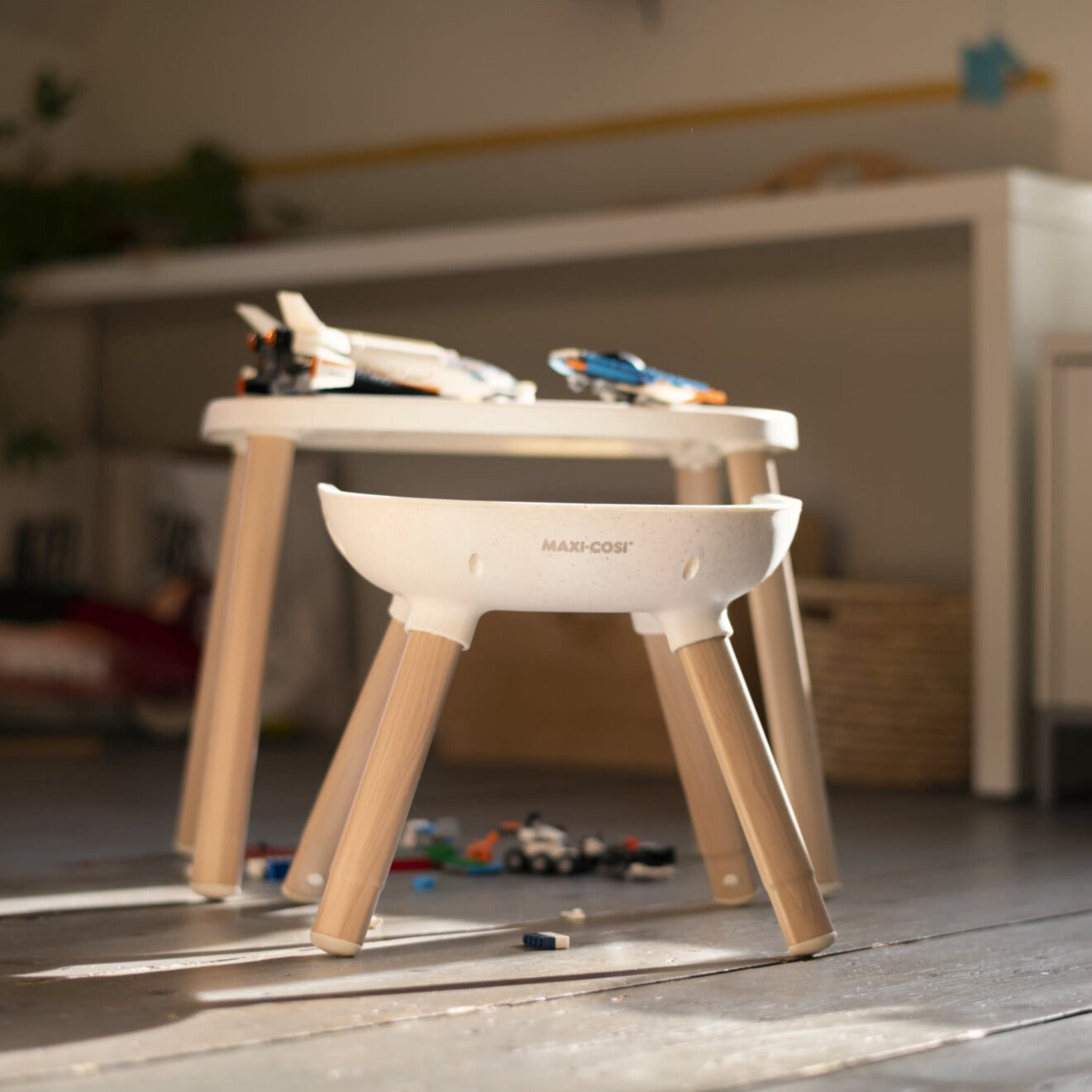 The Moa high chair grows with your child, reconfiguring eight ways from infancy to age five, making it the ultimate, long-lasting essential for eating, discovering, playing, and growing.