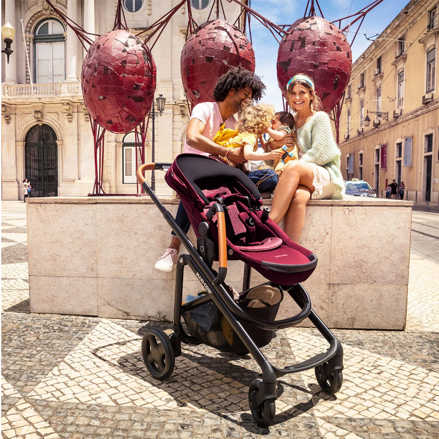 The Maxi-Cosi Lila CP stroller provides versatile comfort and convenience with mid-sized wheels, thermo-regulated features, and easy one-hand folding.