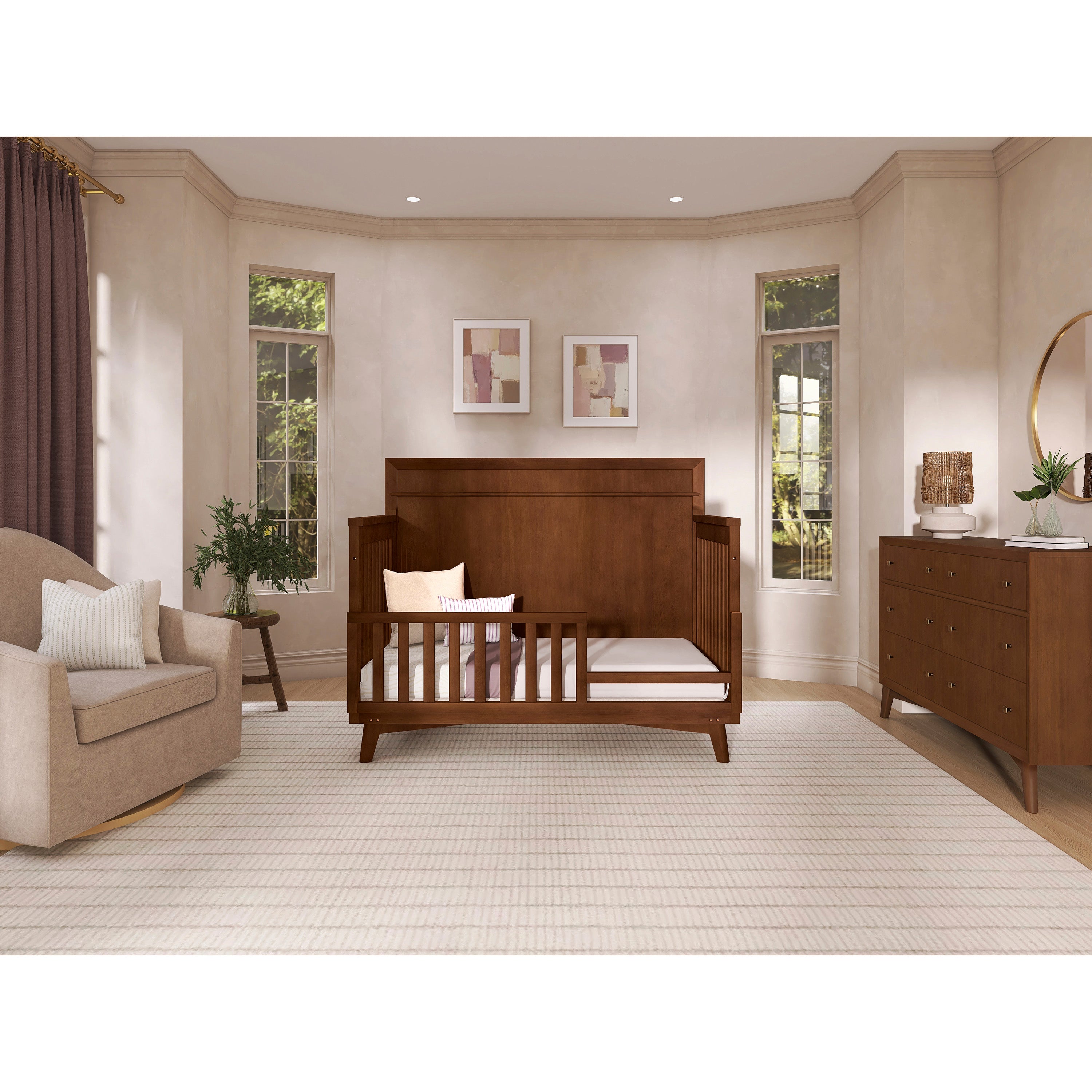 The Venice 4-in-1 Convertible Crib in Walnut brings natural warmth and sophistication to your nursery. Its clean lines, subtle texture, and rich wood tone create a timeless centerpiece that feels both grounded and inviting. Designed for versatility, this crib blends seamlessly with a range of décors—from mid-century modern to classic and cozy.